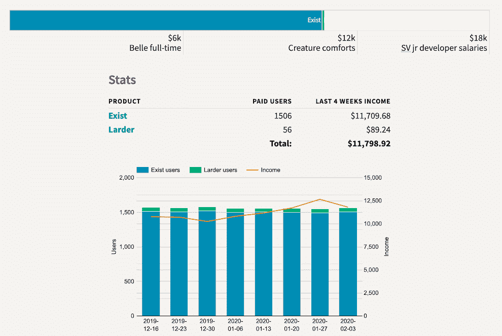 目前,我们每月收入约 14,000 美元,这笔钱支付我们的全职薪水。