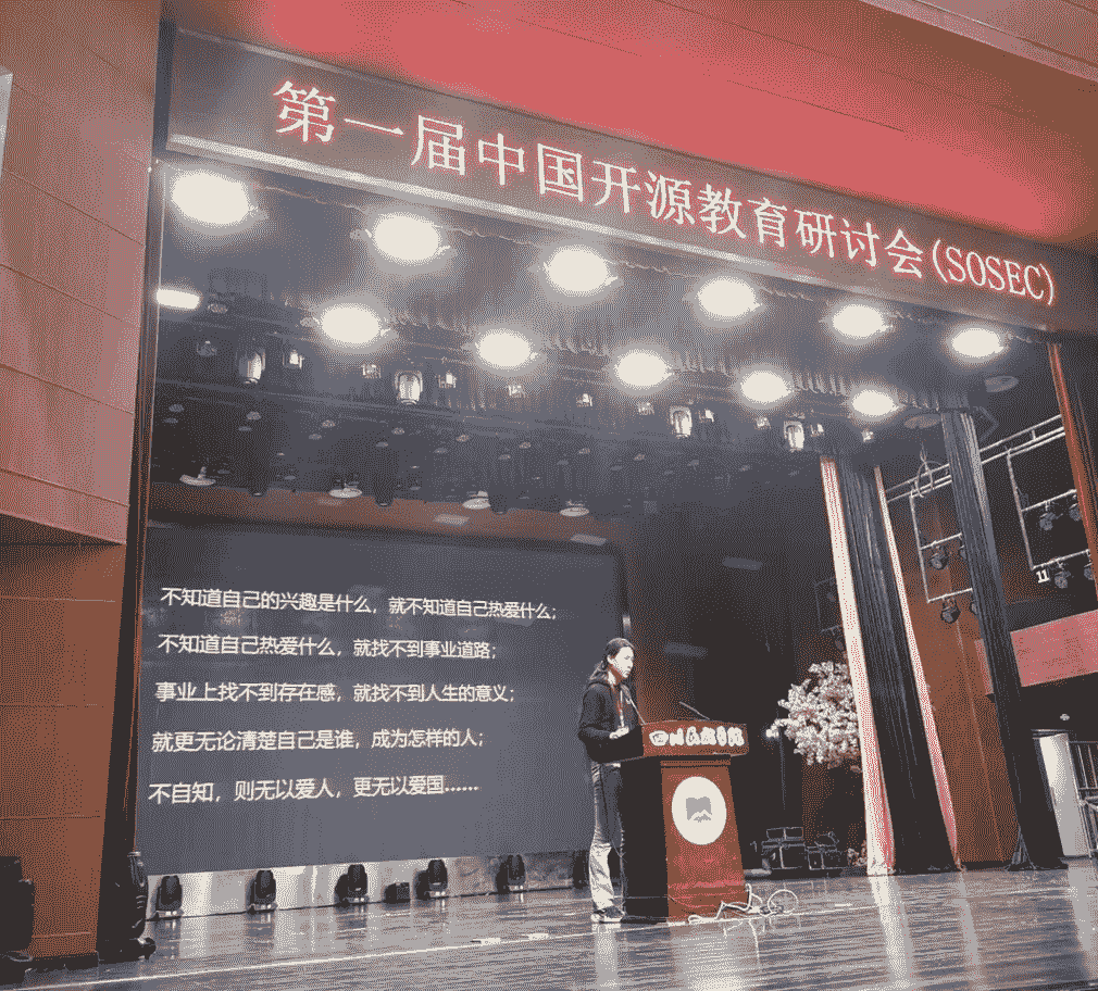 我出差比较少,大部分时候是在线上参与一些讨论会。今年 5 月,我们受邀参加第一届“中国开源教育研讨会”,很荣幸能作为唯一来自草根社区的代表与来自全国十多所大学、科研院所以及国内外大企业的老师们交流,我们受益匪浅。这好像是我今年唯一一次出差。