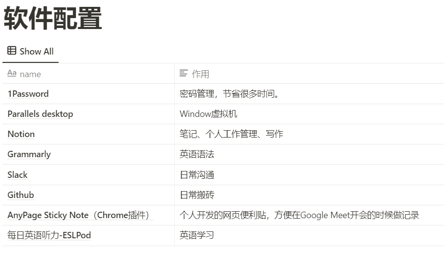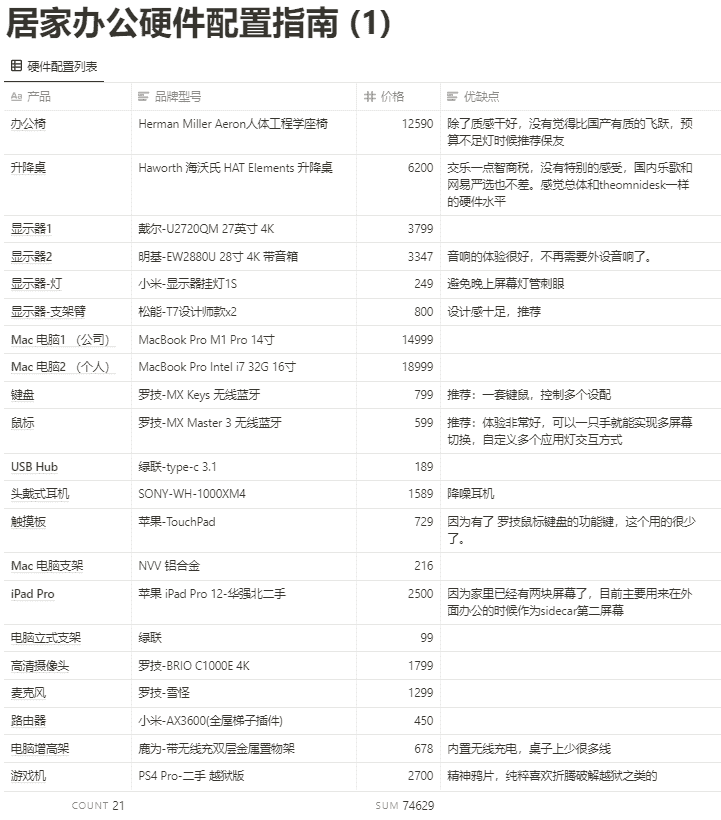最近刚好在更新自己了 home office setup,就把自己所有的硬件和软件做了一个表格记录下来了