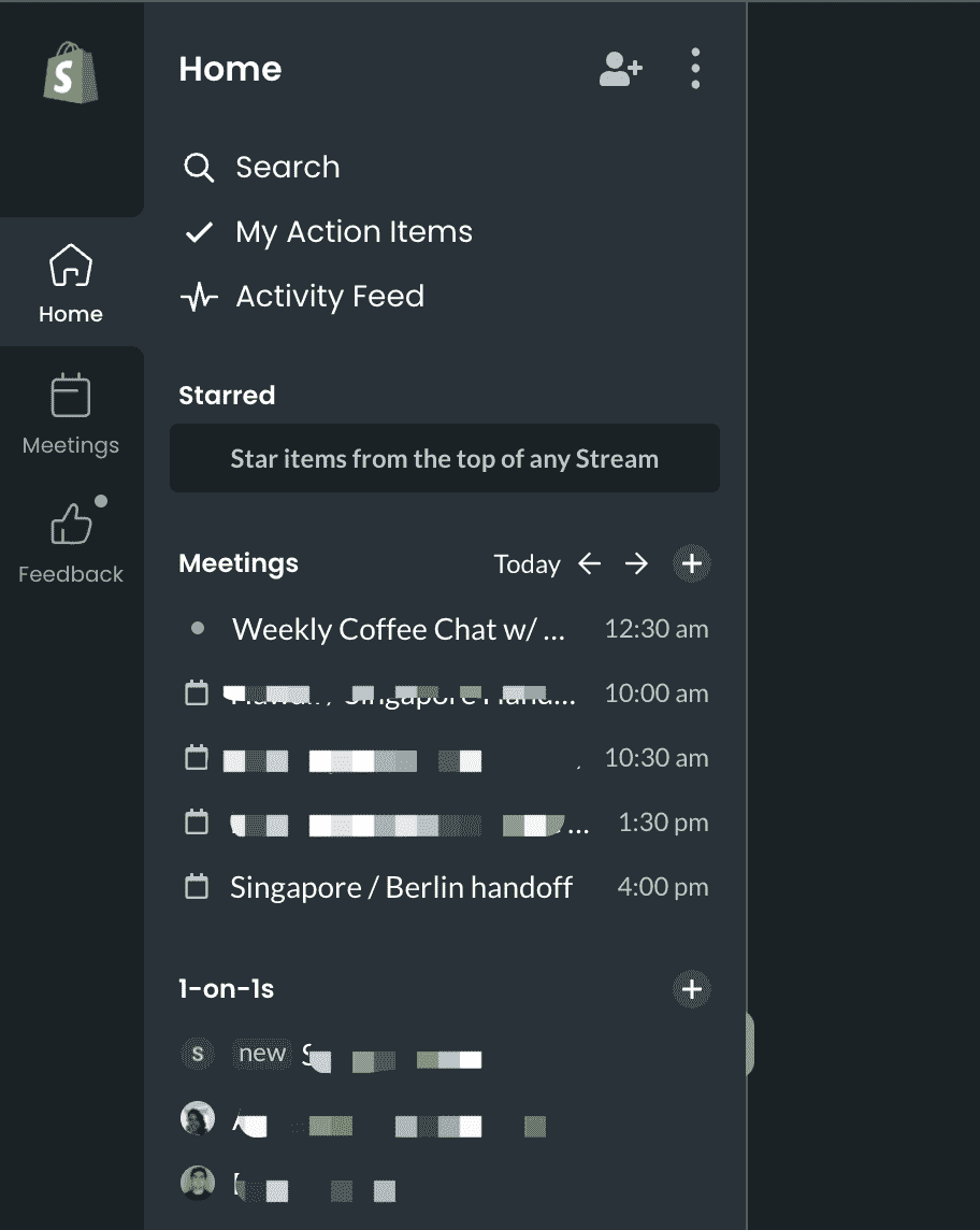 对于每天会议安排,我们都是使用一个 fellow.app 的 web 应用,它会和 slack 以及 Google Meet 打通了,每次会议的 Discussion Points 都会写到里面。
