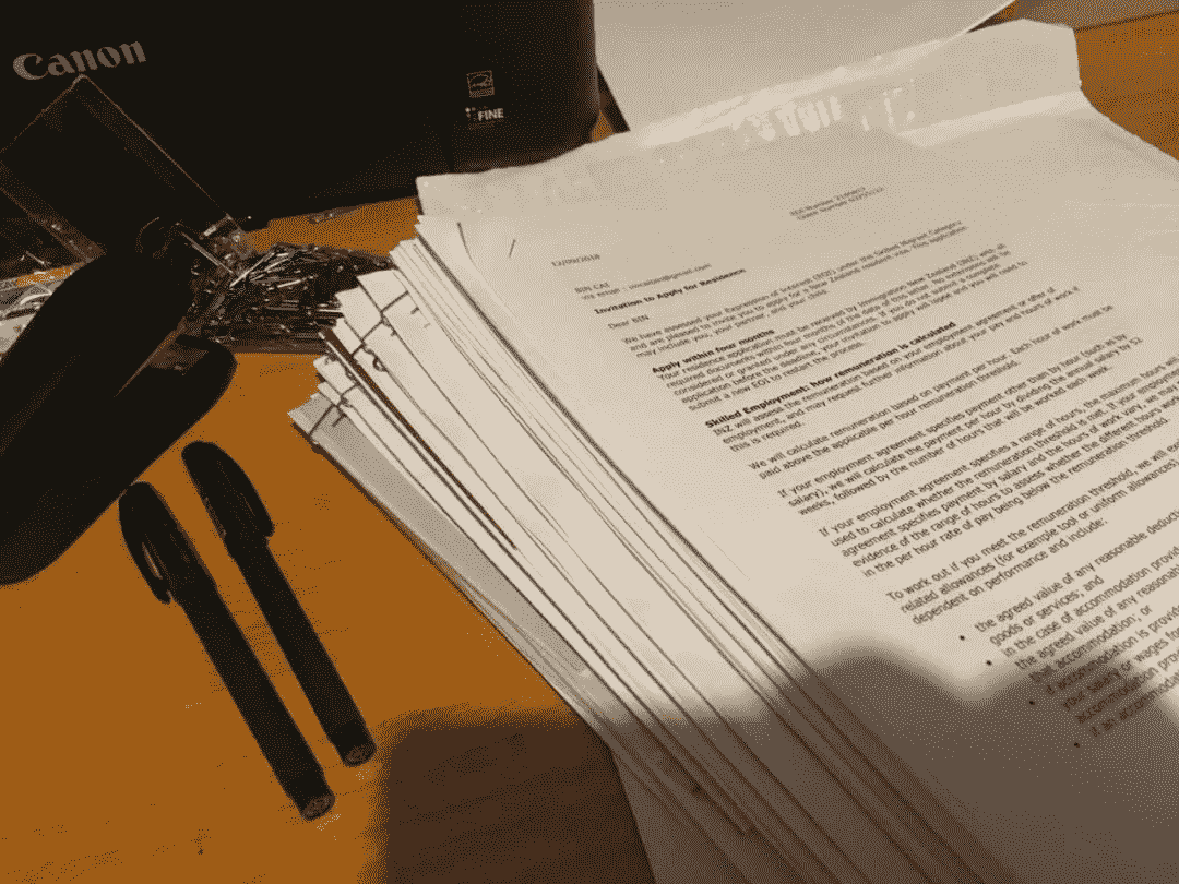 拍于 2018 年奥克兰,准备好了所有申请材料